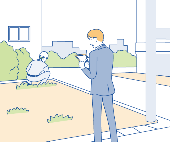 スタッフが実際に現場に行き、敷地の状況を確認しながら、面積や形状、方向・景観などの立地環境まで、しっかりチェックします。
