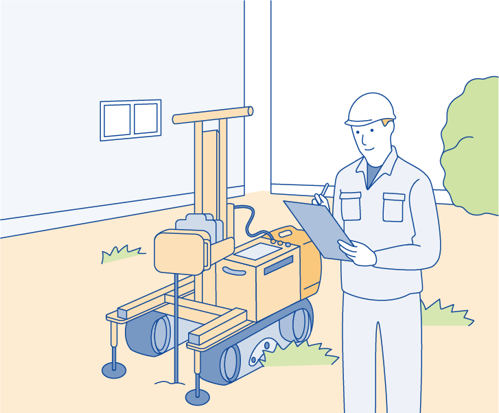 着工前に必ず全棟で地盤調査を行い、結果に基づいて最適な基礎計画を行います。
