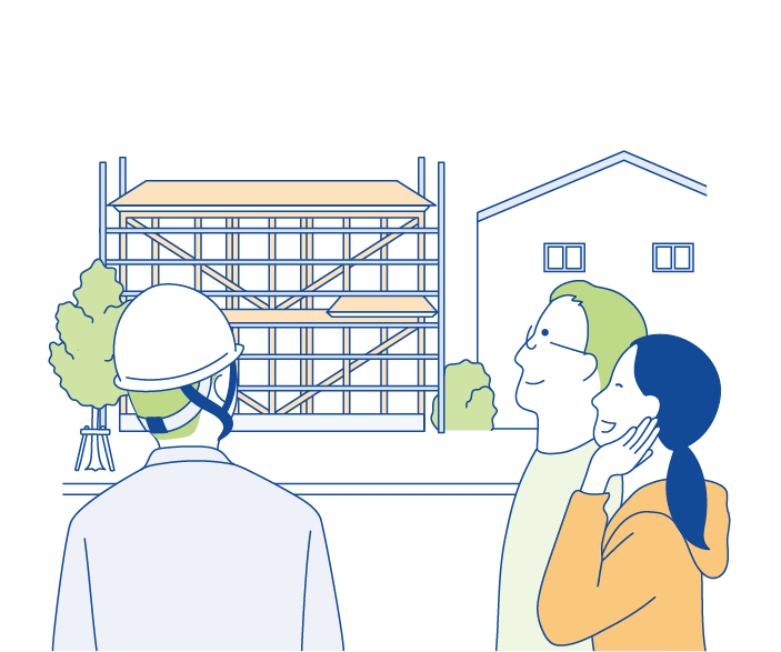 - 建築途中では、工事検査の立会い・現場打ち合わせで現場に足を運んでいただく機会を設けています。